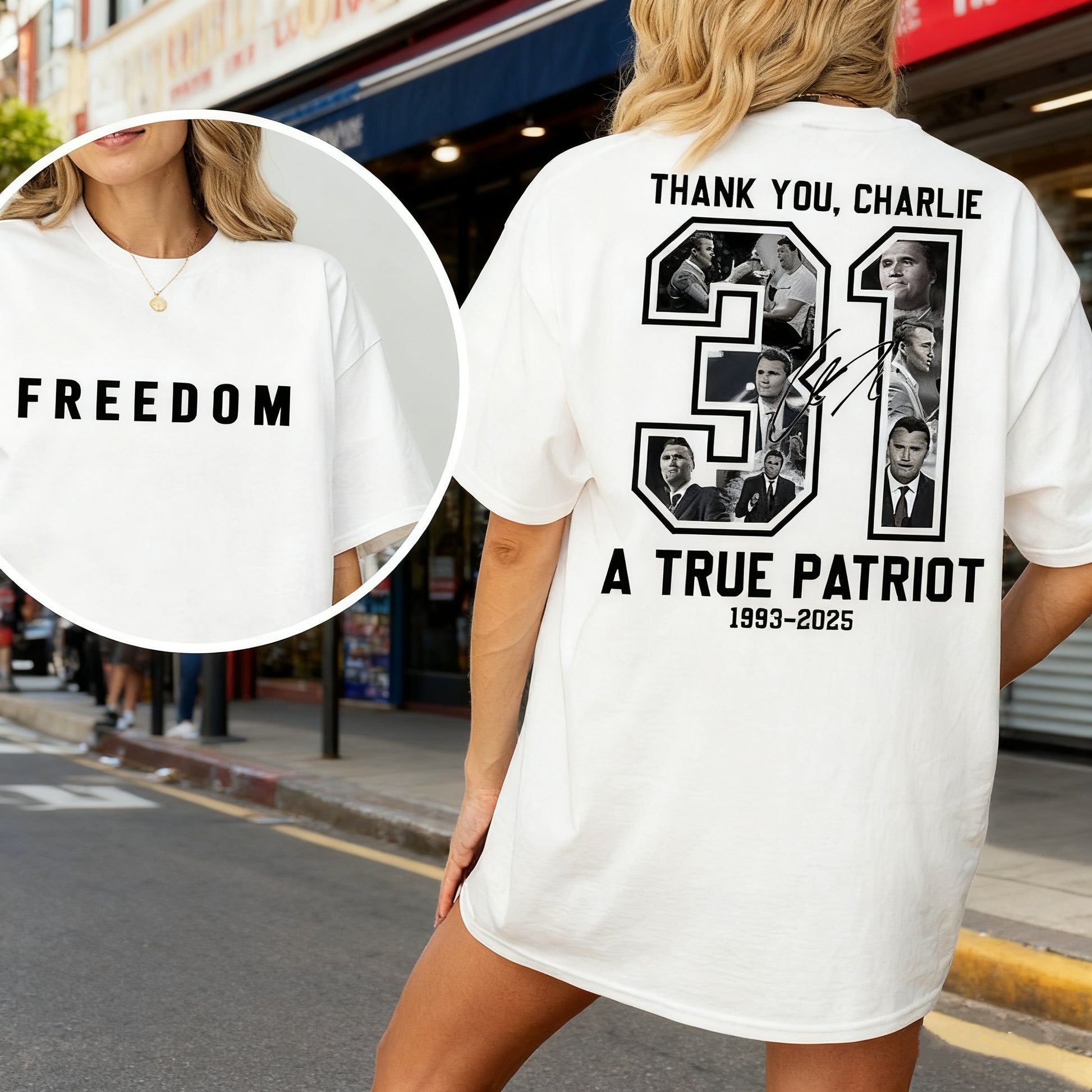 Freedom Charlie Kirk Sweatshirt, True Patriot Graphic Tee, Rest In Peace Charlie Kirk, Thank you Charlie Tee, Justice Shirt, Political Shirt, Charlie Kirk Memorial, American flag Shirt - Trending - TShirt, Sweatshirt